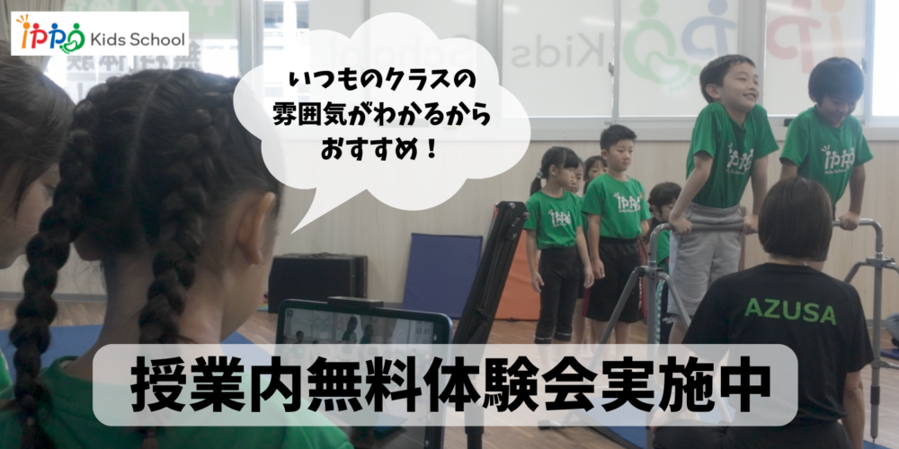 ippoでは鉄棒、跳箱、マットを中心に平均台や縄跳びなど様々な器具を使い運動します。